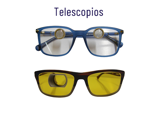 Se trata de telescopios de pequeño diámetro alojados en la parte superior de una lente soporte. En condiciones normales, el usuario mira a través de su corrección óptica convencional. Pero al inclinar ligeramente la cabeza hacia abajo, dirige la mirada al telescopio, lo que le permite obtener una imagen ampliada del objeto de interés.